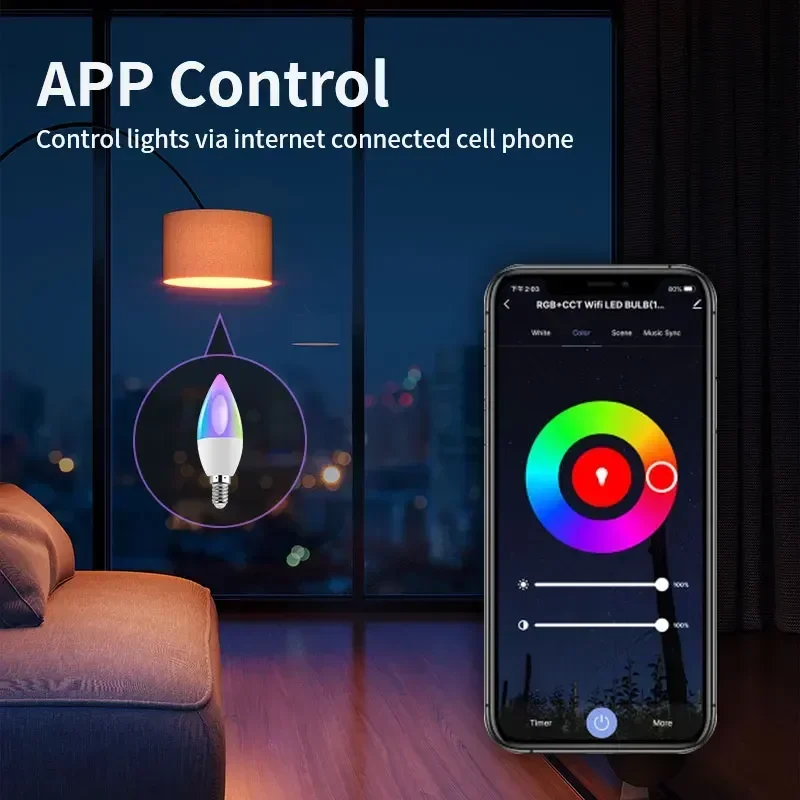 You can adjust the brightness, color temperature and color of the light bulb through your mobile phone according to your needs.