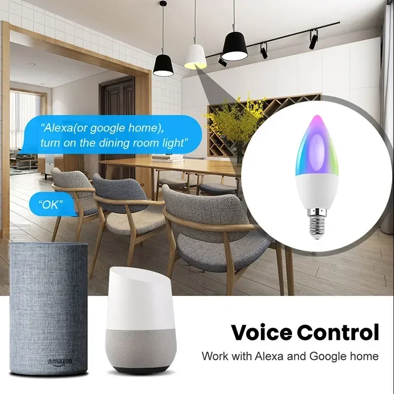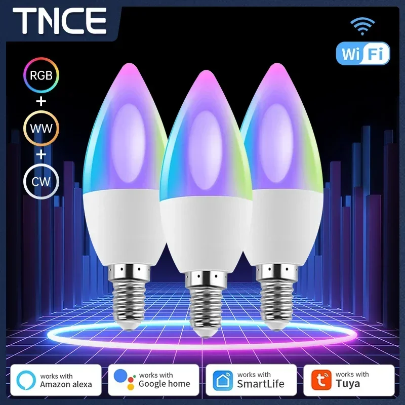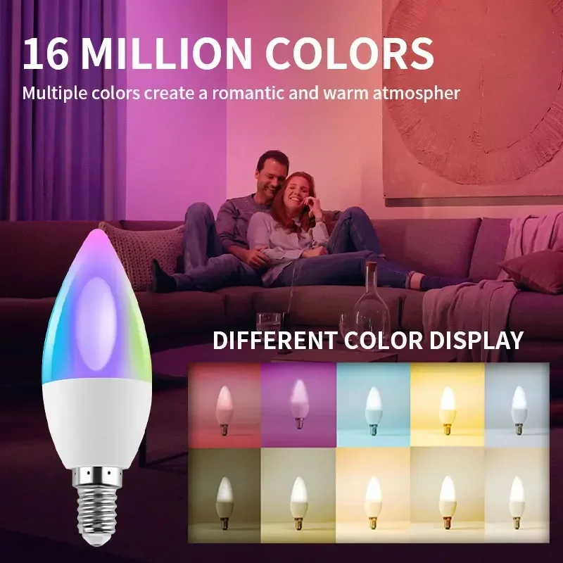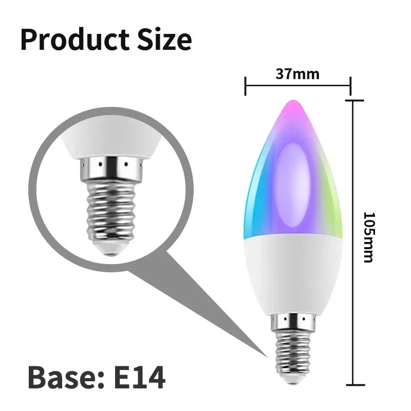 Tuya Bluetooth/Wifi/Zigbee E14 Candle Lamp RGB Light Dimmable for Room App Voice