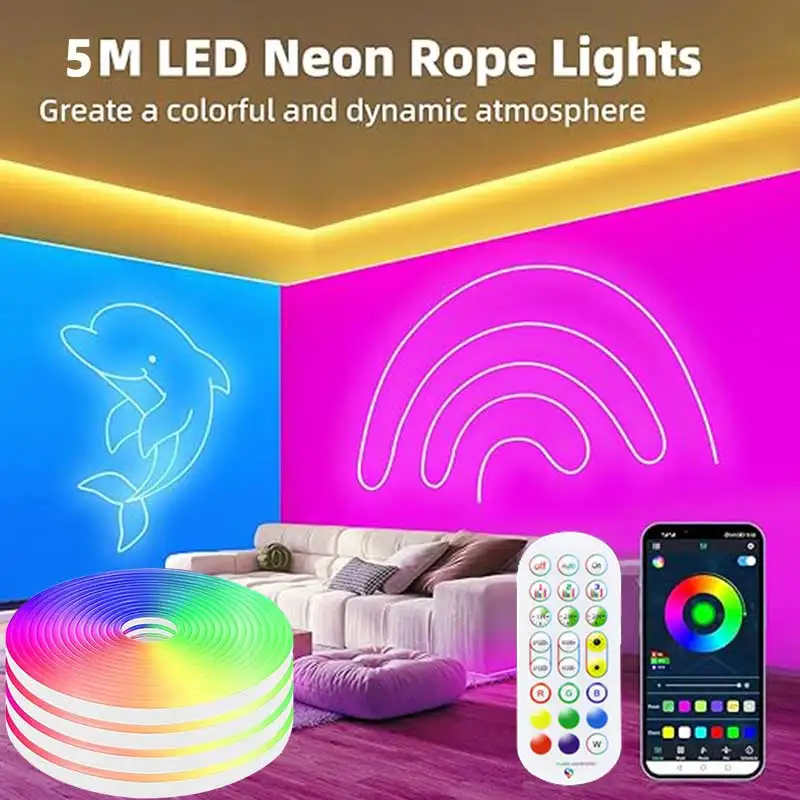 LED Neon Strip Light RGB WIFI 16Colors DIY Light 3m 5m Smart LED Waterproof Flexible Light Strip APP Work With Alexa
