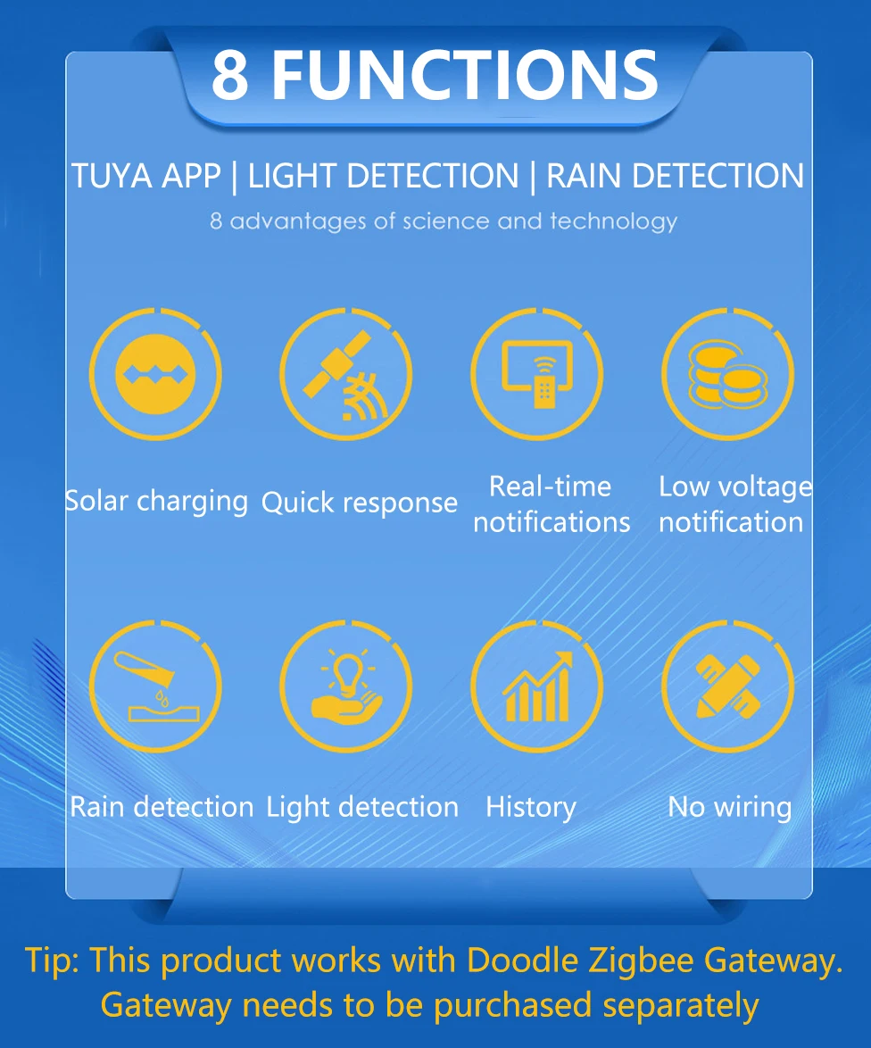 Tuya Smart for Zigbee Rain Sensor Solar Charging Real-Time Rainwater Detector Sm