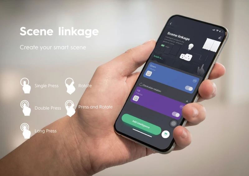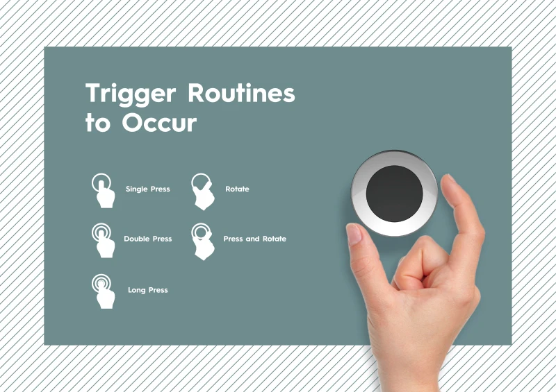 2. Trigger routines to occur. Five different opening modes of the smart knob. Single Press, Double Press, Long Press, Rotate Press and Rotate. Five scenarios can be set, one to meet multiple needs is indispensable for you