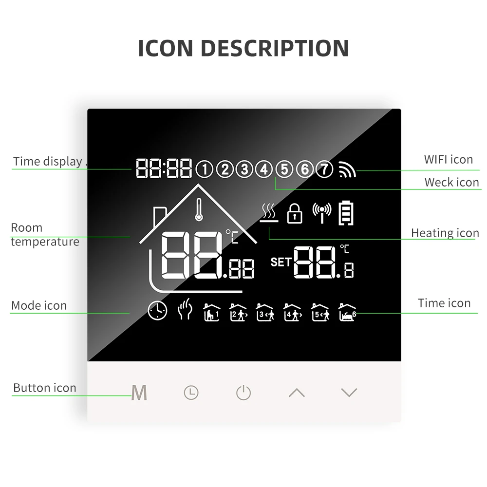 Tuya Smart Wifi Thermostat 16A Warm Electric Floor Electric Heating Temperature