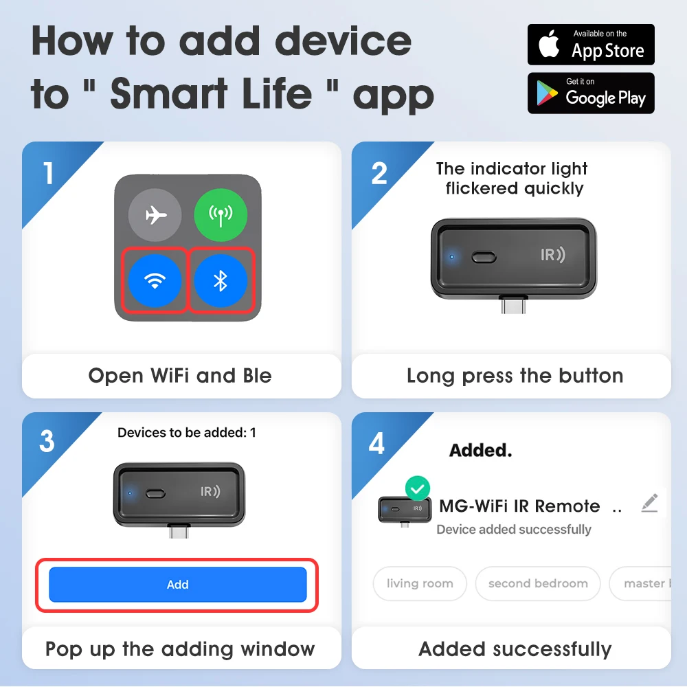 Note: Not compatible with the home appliances which use RF or Bluetooth remote control.