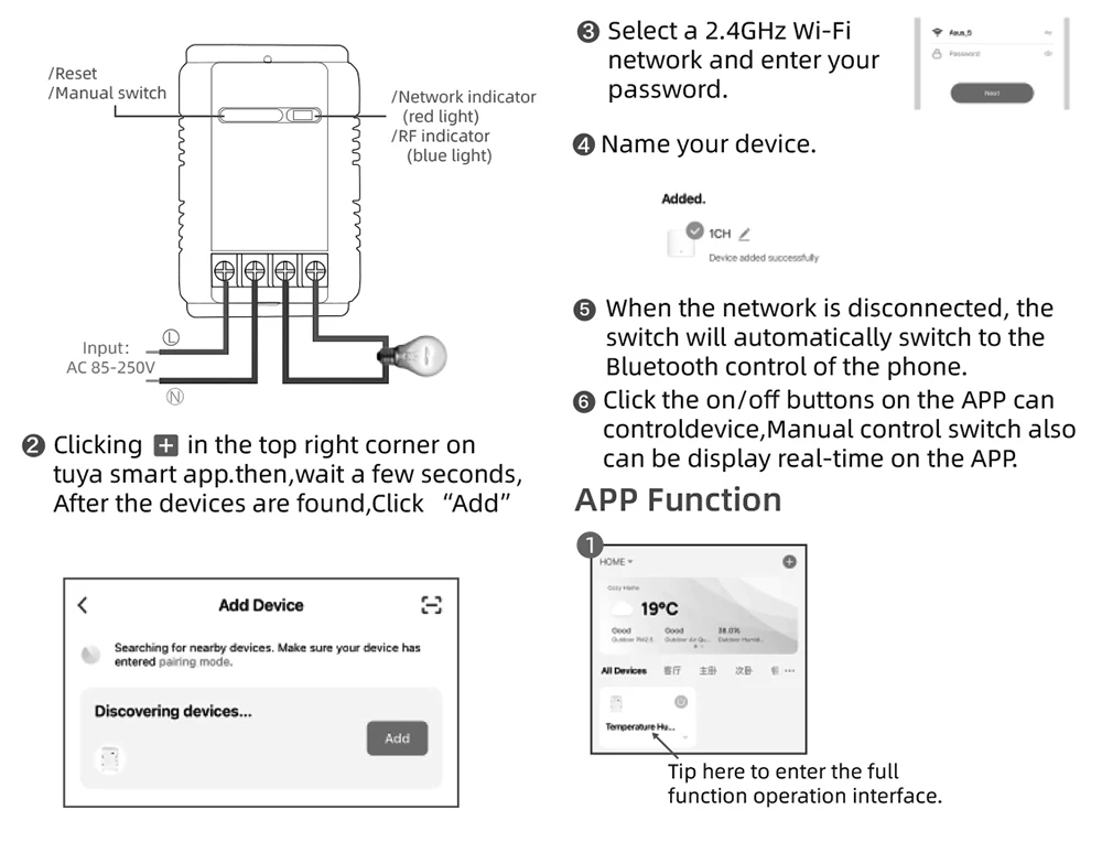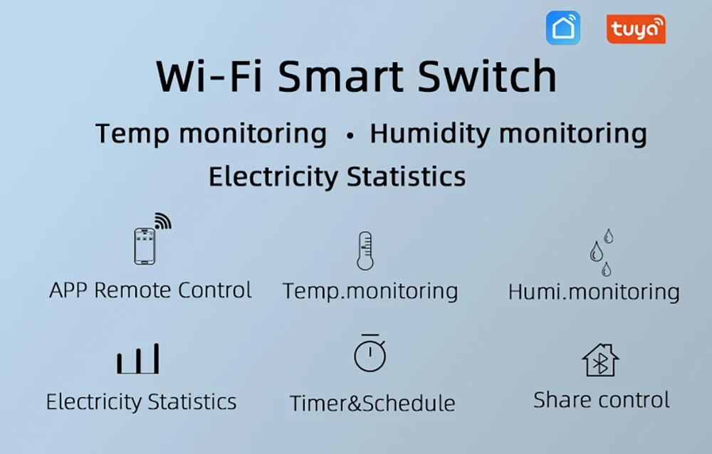 This item is a universal switch for your smart home system to remotely and automatically turn on/off any appliances by phone APP. When the temperature of the environment falls within the range, it will automatically turn on or off the connected devices. It also supports timing turning on/off the appliances and supports presetting the range for temperature and humidity. You can also monitor the daily power consumption in real time through this switch.Work with the Smart Switch and the cht8305 sensor, you can make your home smarter.