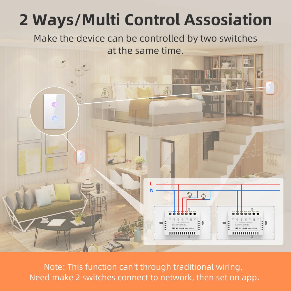 [ Linkage & Group Control Function ] - The light switch can linkage with other switch in your home ,as well as other smart home appliance.One step to realize complicated command.That make create leave home scene ,back home scene and sleeping scene etc possible.