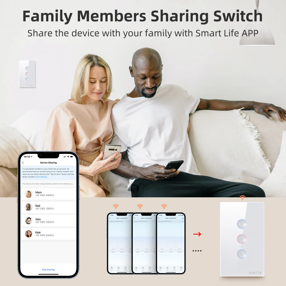 [ Family Share Function ] - Share the light switch to your family member via smart life app with limited authority. Control your home with your family together in safe way.