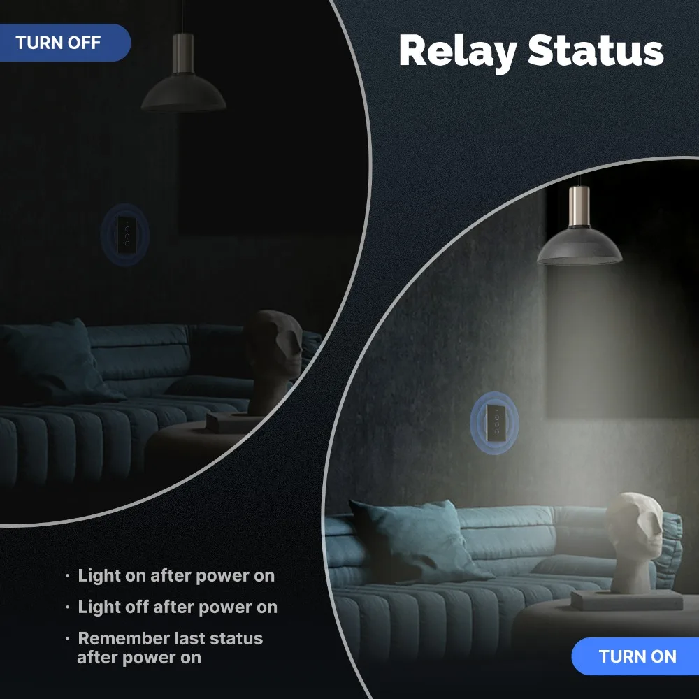 According to the actual condition, the restart status after power on can be chosen to avoid the unexpected changes that may bother your life.