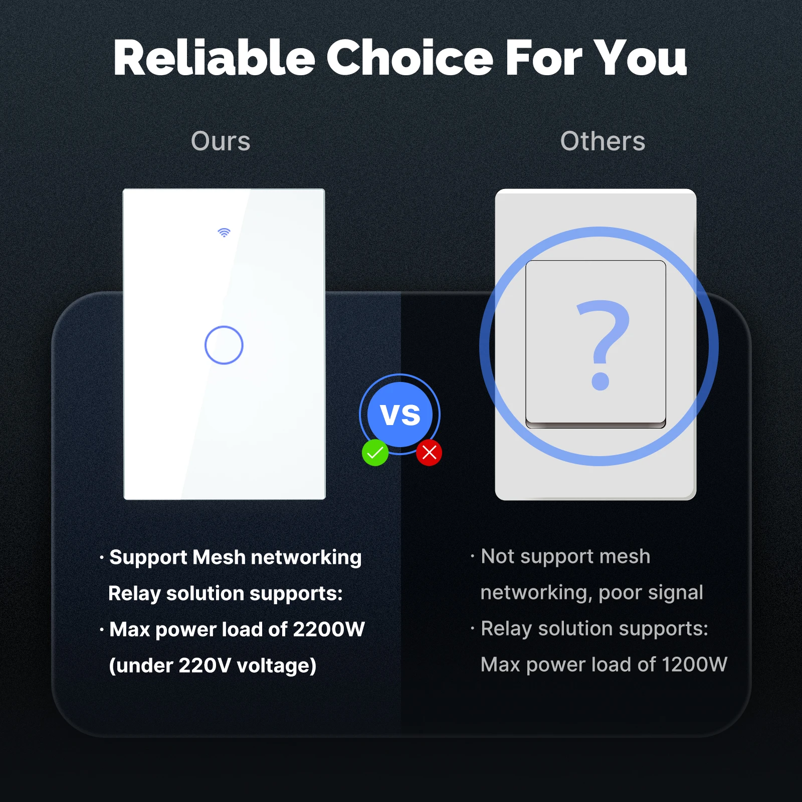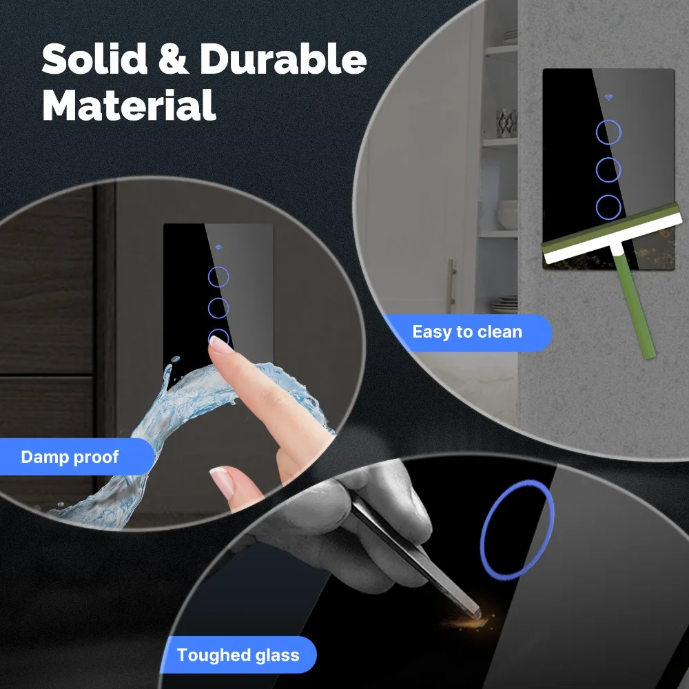 The switch is made of tempered glass and PC material, which is easy to clean and adapts to different environments.