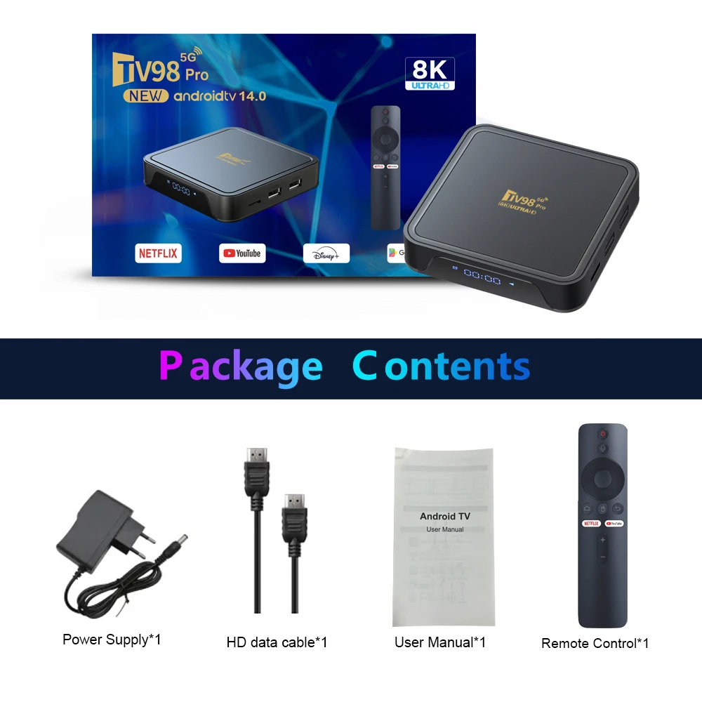TV Box Android 14 TV98 Pro ATV Allwinner H313 Quad Core 8K Video 4K 2GB 16GB Dua