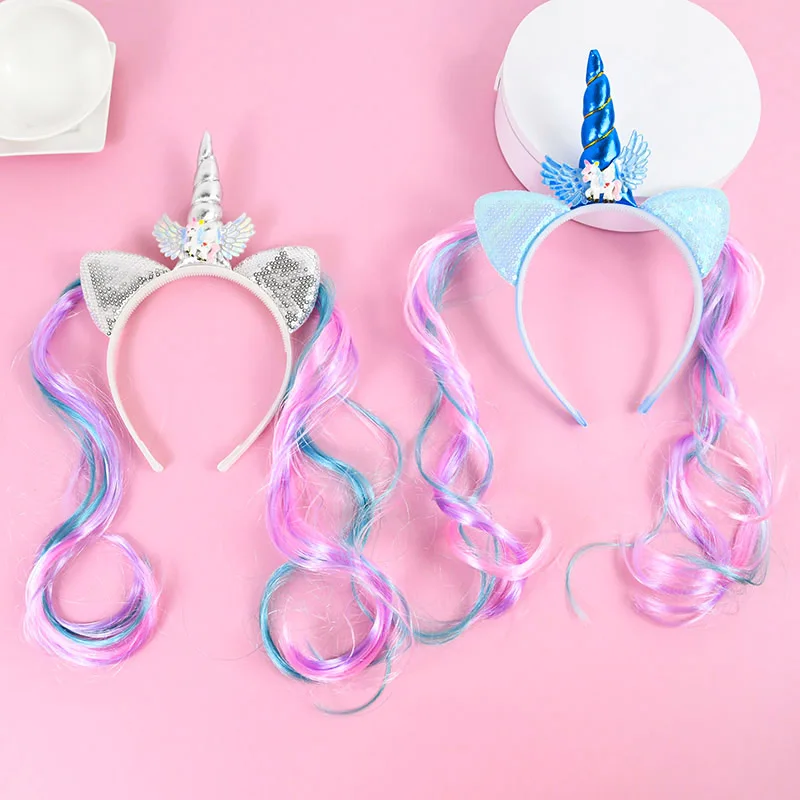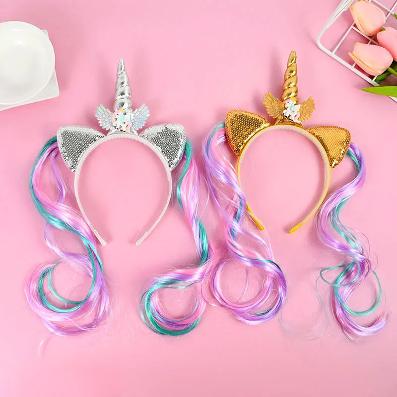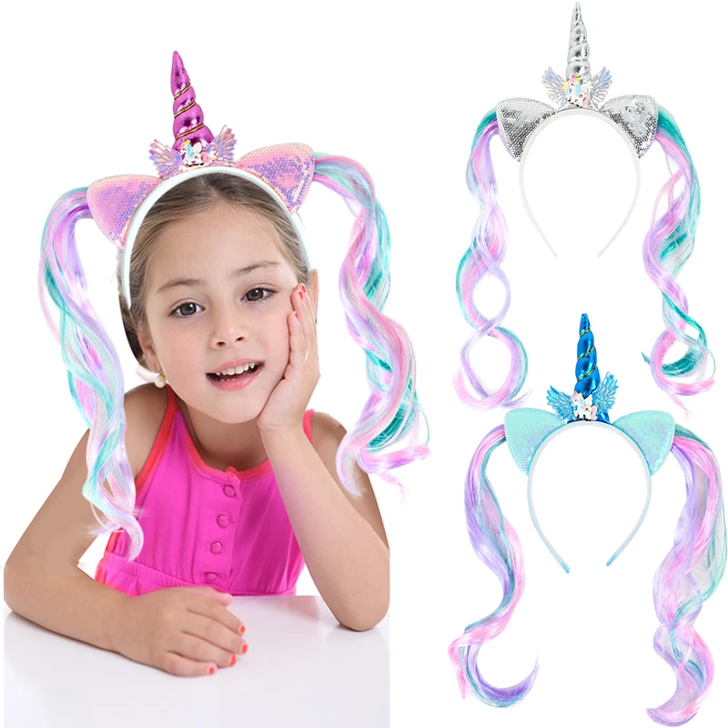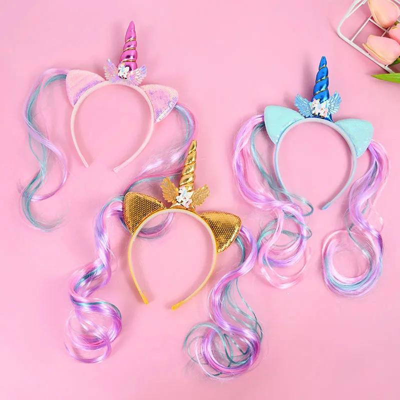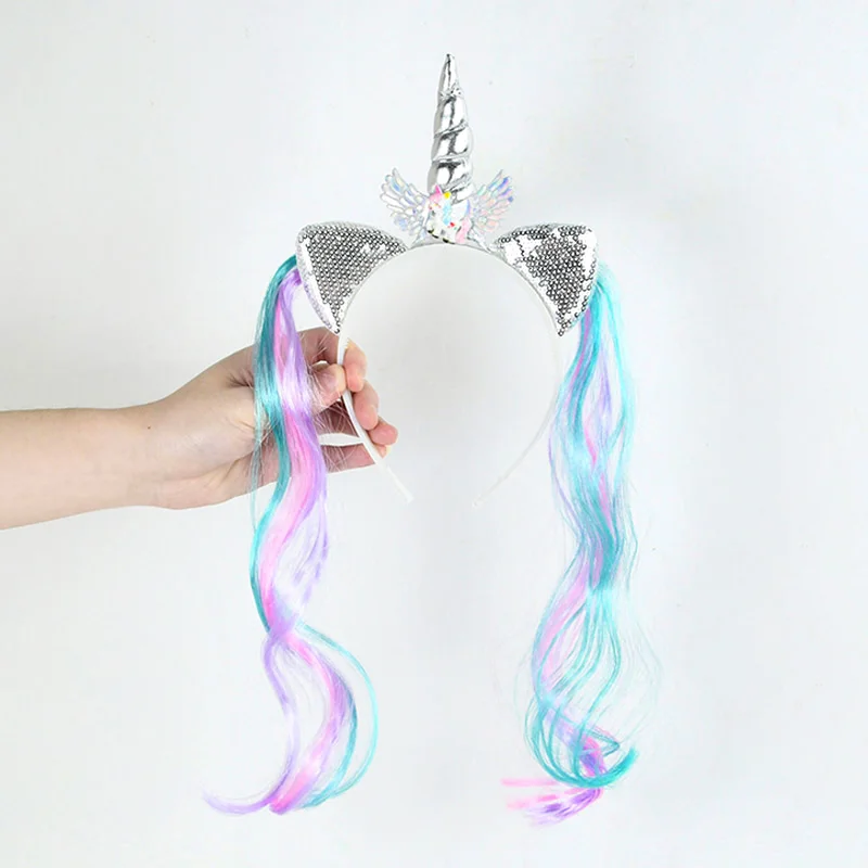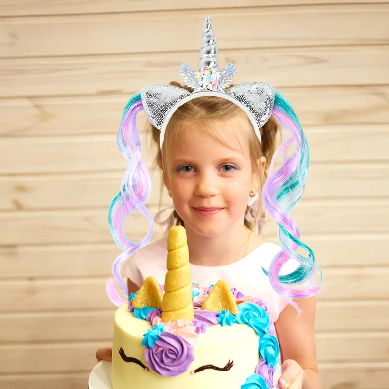 Unicorn Birthday Girl Headband Sequined Two Pigtail Hair Hoop Hairbands Baby Sho