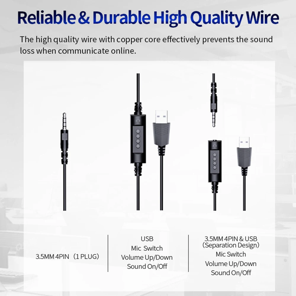 4. Universal compatibility-This phone headset with microphone can be plugged into computers, PS game consoles, desktops and other devices for clear card-free communication.