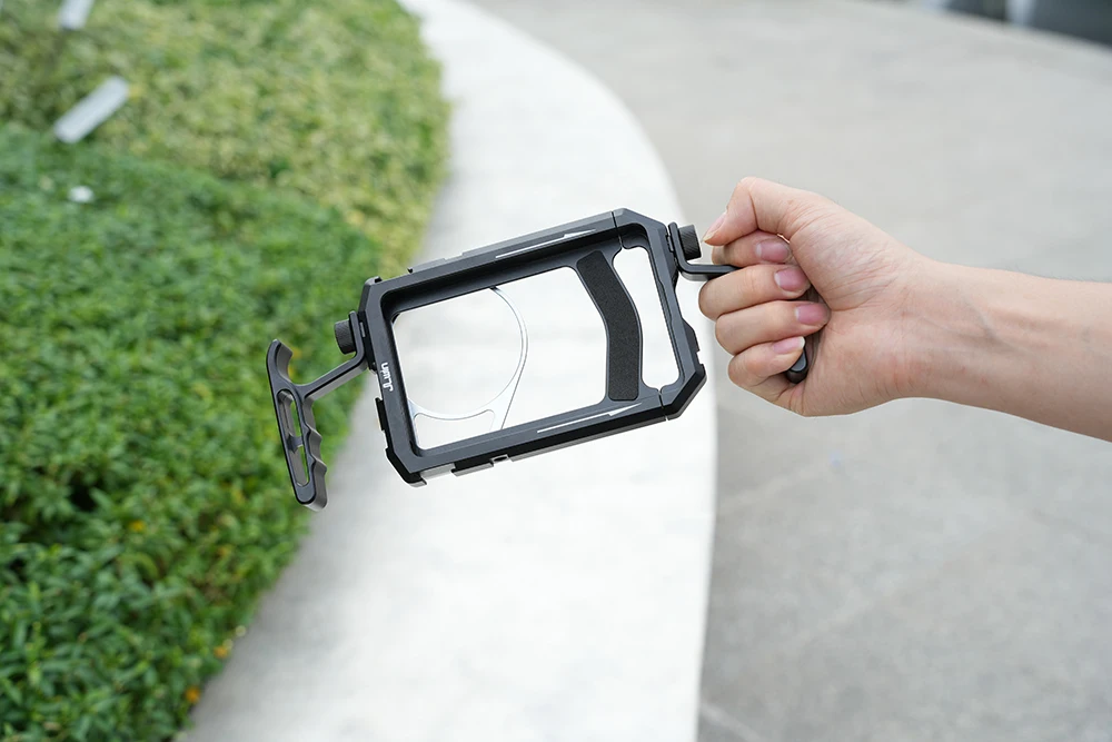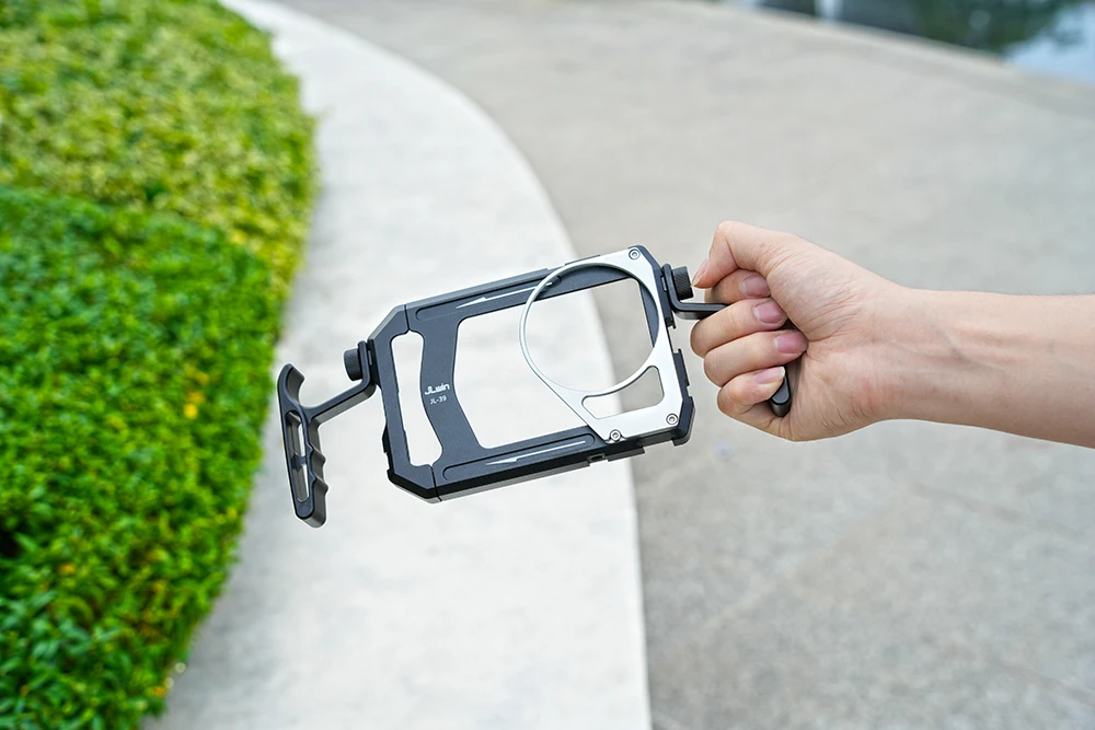 1. One-handed, two-handed, and hand-held (ergonomic grip) design, which fits the hand better and makes shooting more stable. It also comes with a cold shoe and a 1/4 threaded interface to facilitate external expansion.