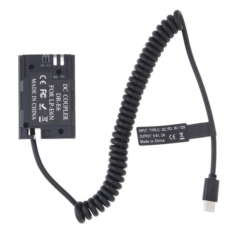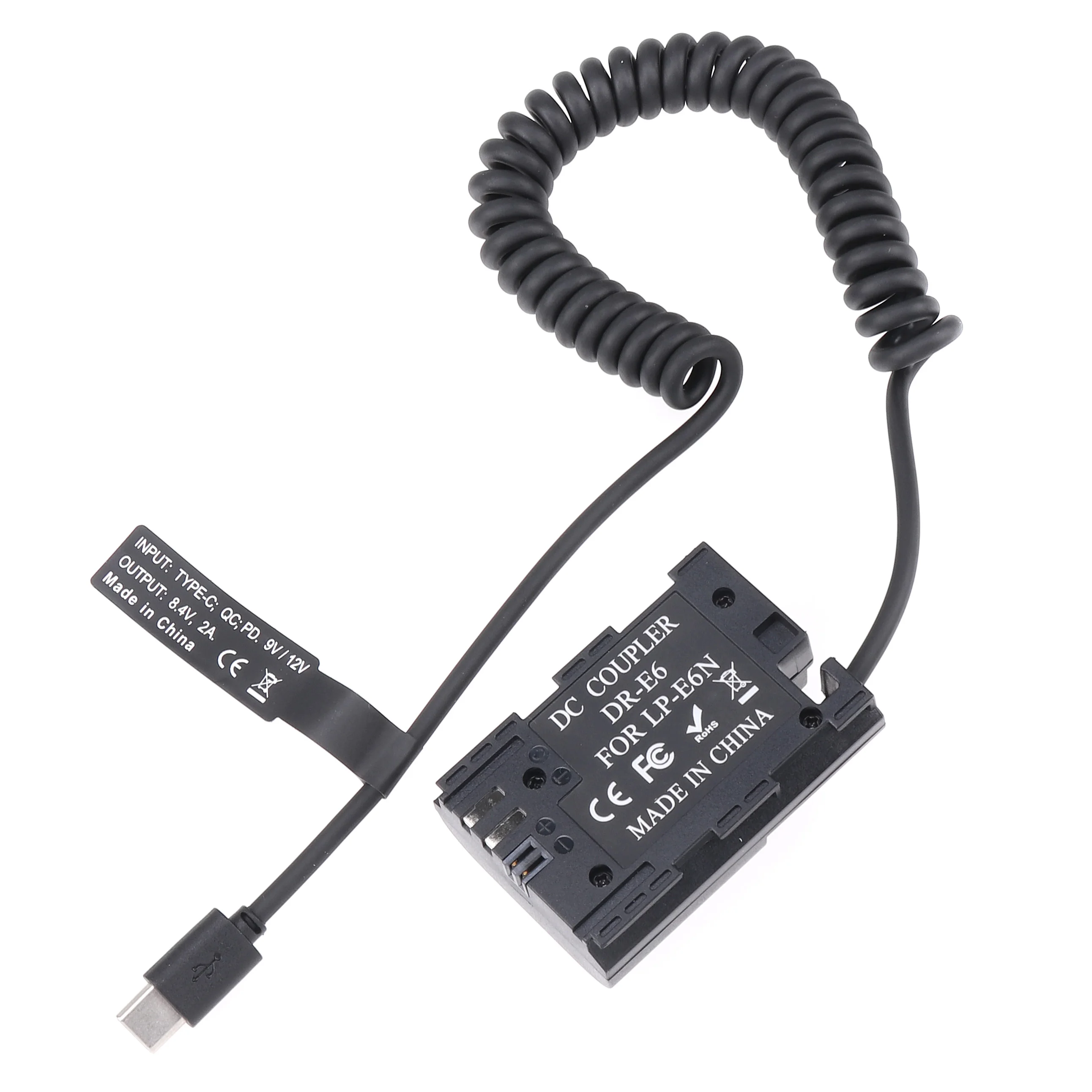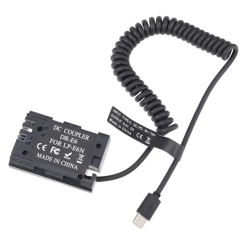 USB-C Type-C to Decoded LP-E6 Dummy Battery DR-E6 Coupler Power Supply Spring Ca