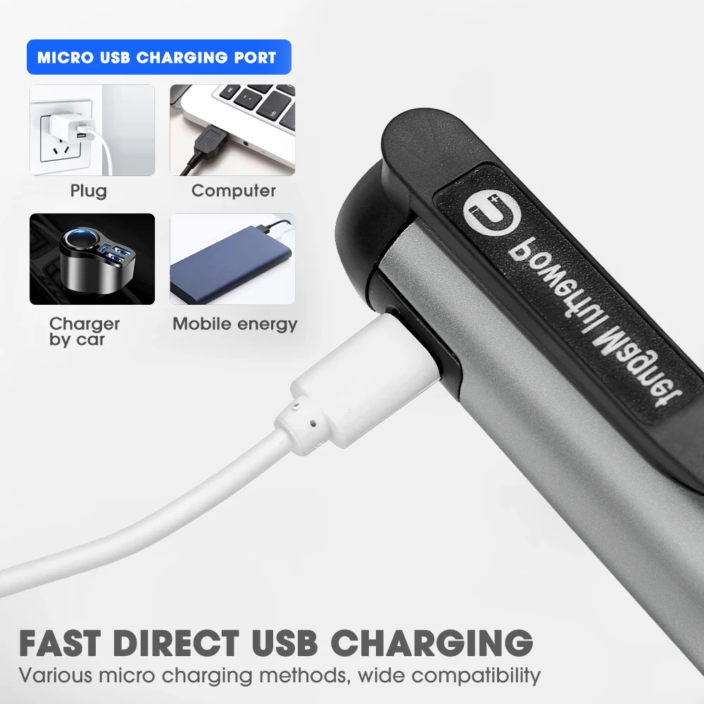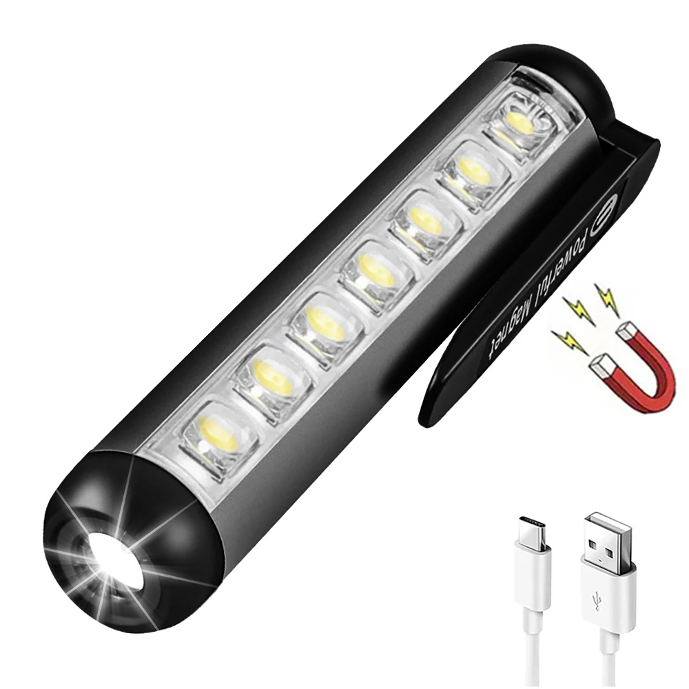 USB Rechargeable Mini LED Flashlight with Clip Magnet Work Light Lantern Portabl