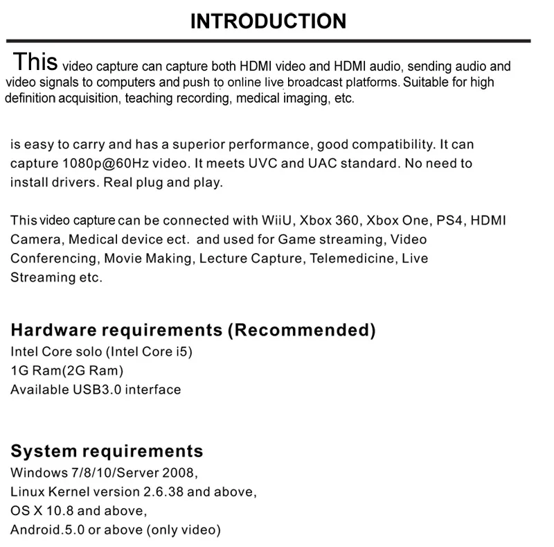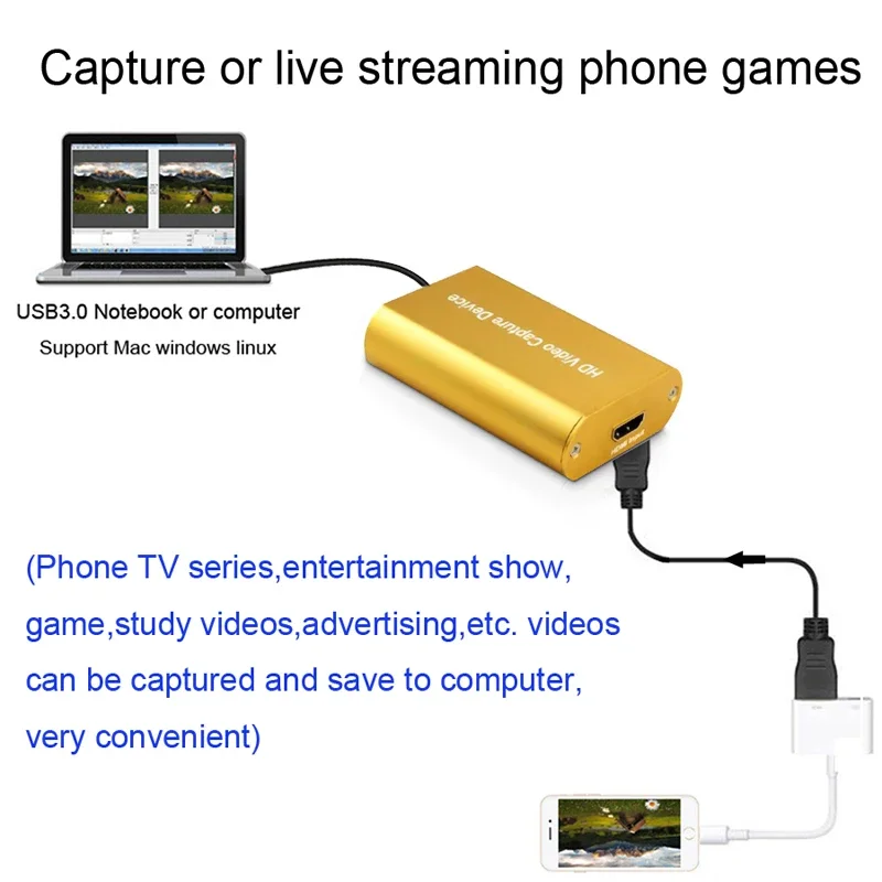 USB3.0 1080P 60Fps HDMI to USB 3.0 Video Capture Card Laptop PC Game Recording B