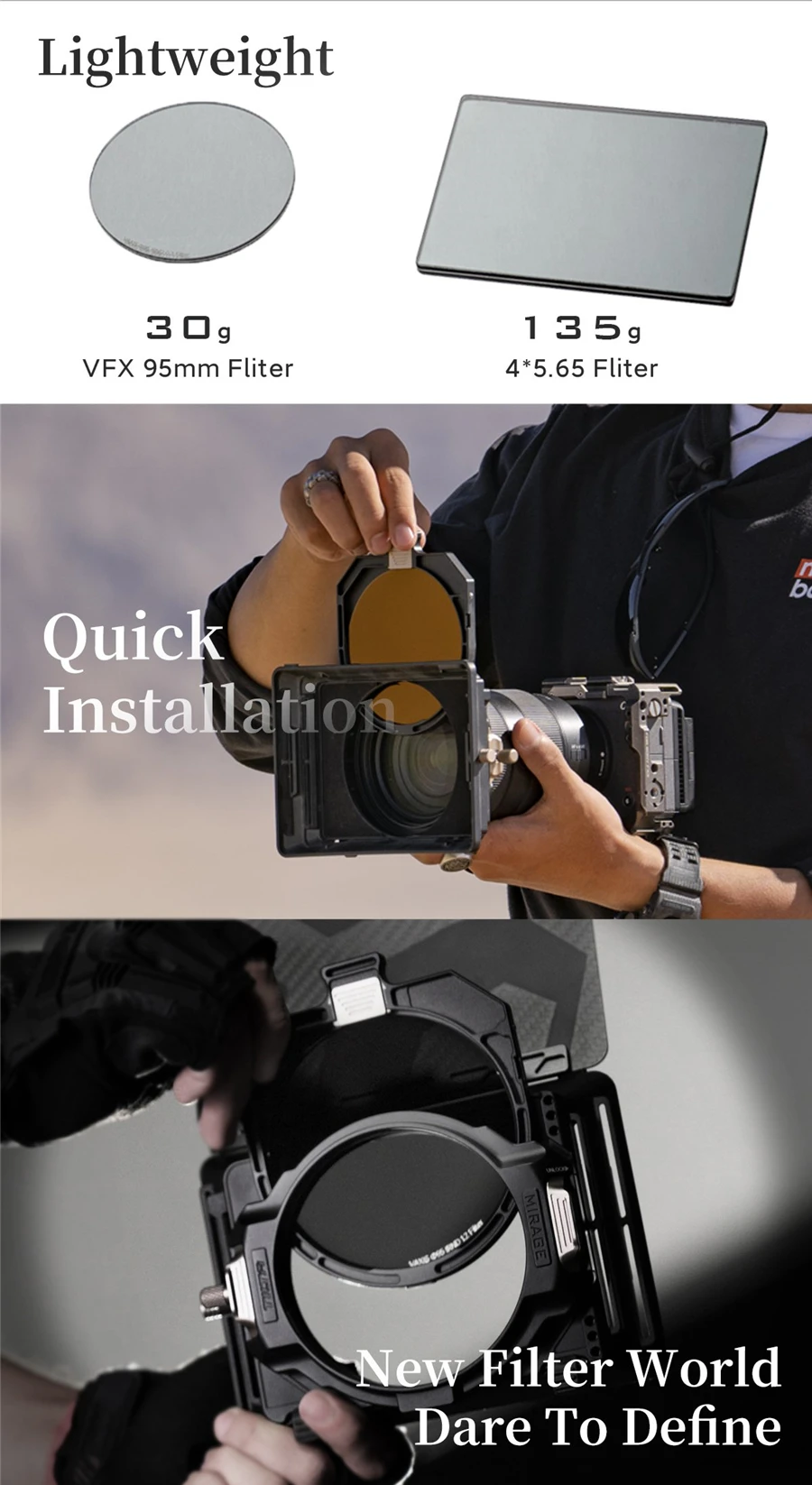 [LIGHTWEIGHT] Construction is Only 1/4th the Weight of a 4x5.65 Filter