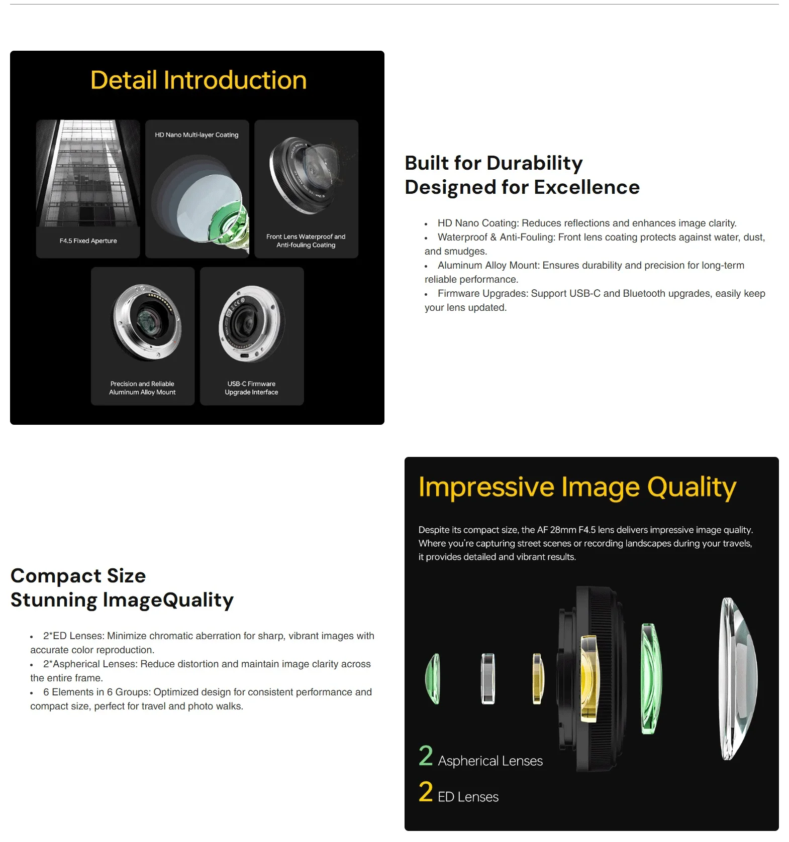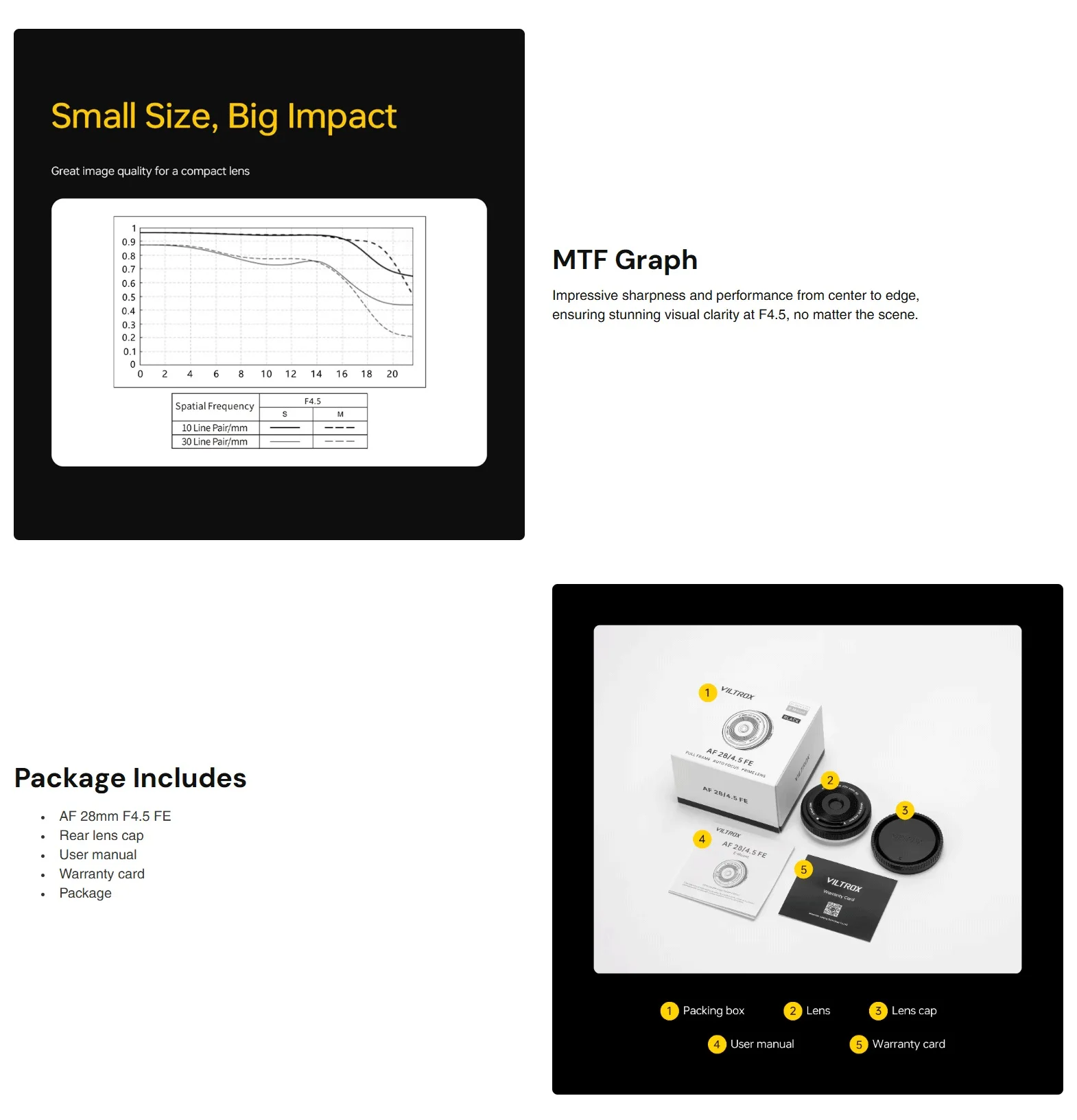 Viltrox 28Mm F4.5 Lens Full Frame Auto Focus Cameras Lens for Sony E Fujifilm XF