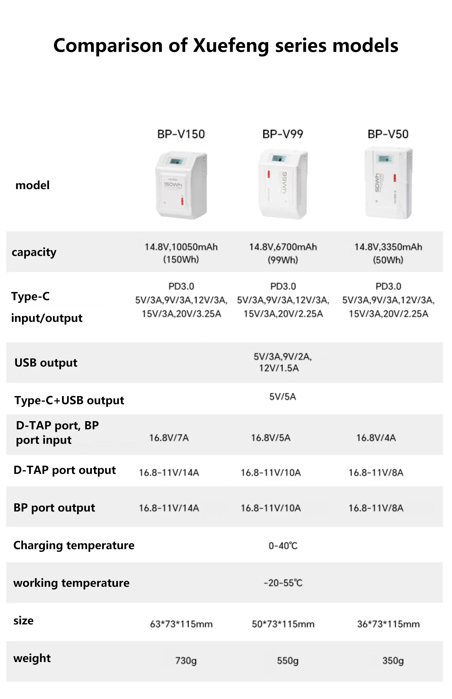VILTROX BP-V50 BP-V99 BP-V150 Mini V-Mount/V-Lock High-Capacity Battery D-TAP/BP