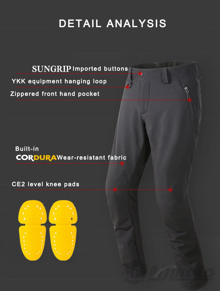 Equipped with CE2 hip and knee protective pads, these pants provide enhanced safety during rides, safeguarding against potential injuries.
