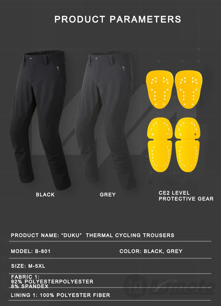 Made from high-quality polyester and nylon, these pants offer warmth and comfort, making them ideal for cooler rides.