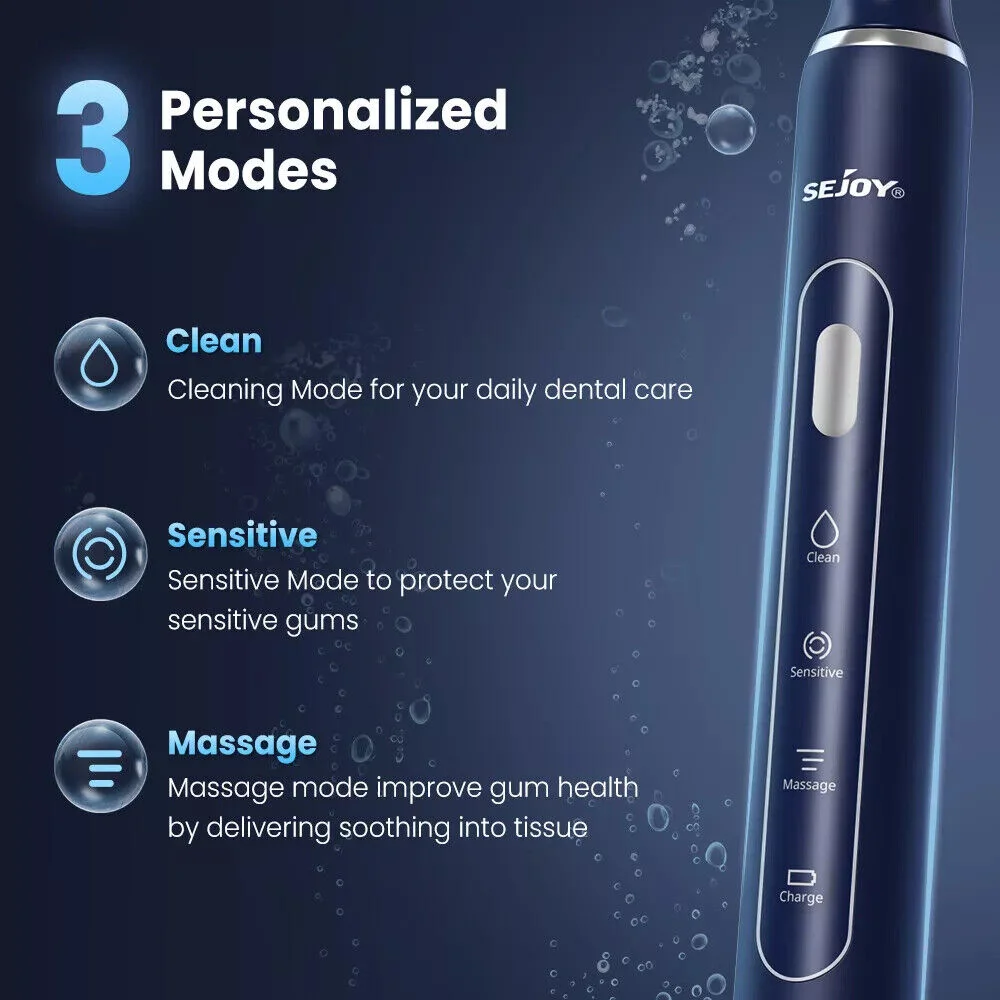 Three Optional Brushing Modes:Customize your experience according to your teeth condition.Clean (regular brushing), Sensitive (soft),Message (gentle invert frequency).IPX7 waterproof designenjoy the brushing time,no matter showering or bathing.
