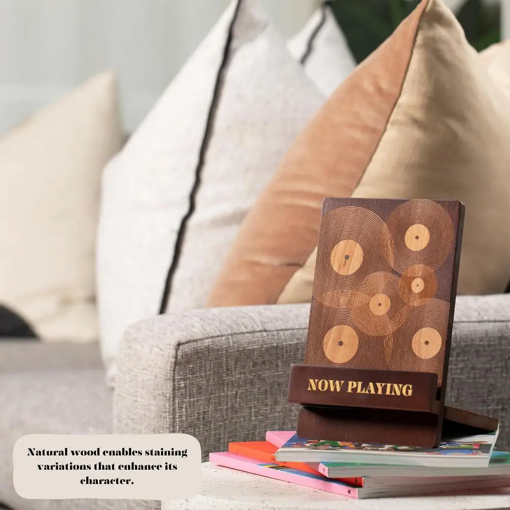 Wood Record Holder Now Playing Wood Record Stand Engraved Design Newspaper File